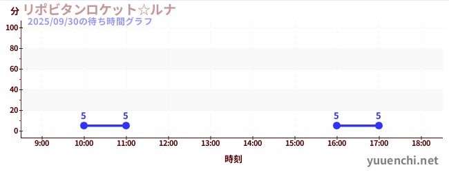2025/09/30の待ち時間グラフ (リポビタンロケット☆ルナ)