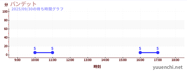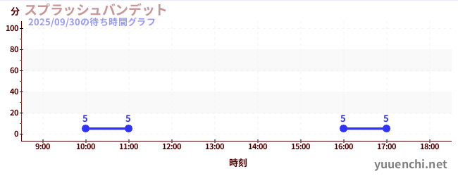 2025/09/30の待ち時間グラフ (スプラッシュバンデット)
