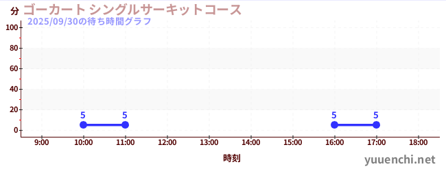 2025/09/30の待ち時間グラフ (ゴーカート シングルサーキットコース)