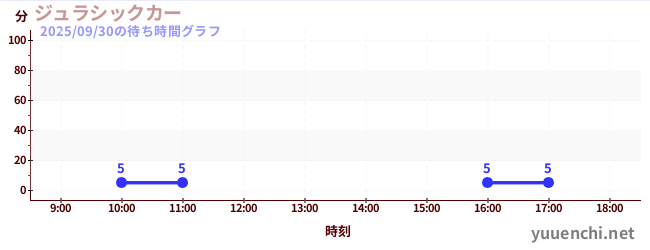 2025/09/30の待ち時間グラフ (ジュラシックカー)
