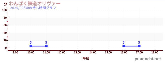 2025/09/30の待ち時間グラフ (わんぱく鉄道オリヴァー)