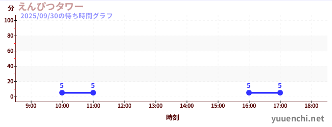 2025/09/30の待ち時間グラフ (えんぴつタワー)