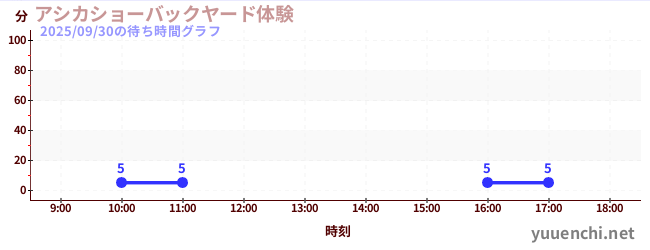 2025/09/30の待ち時間グラフ (アシカショーバックヤード体験)