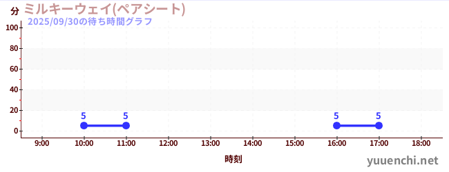 2025/09/30の待ち時間グラフ (ミルキーウェイ ペアシート)