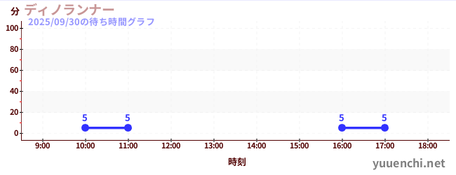 2025/09/30の待ち時間グラフ (ディノランナー)