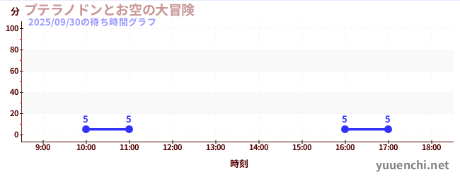 2025/09/30の待ち時間グラフ (プテラノドンとお空の大冒険)