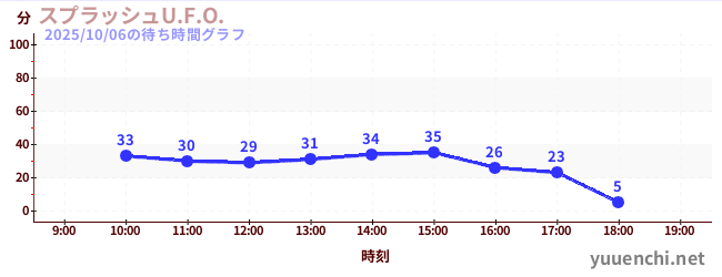 2025/10/06の待ち時間グラフ (スプラッシュU.F.O.)