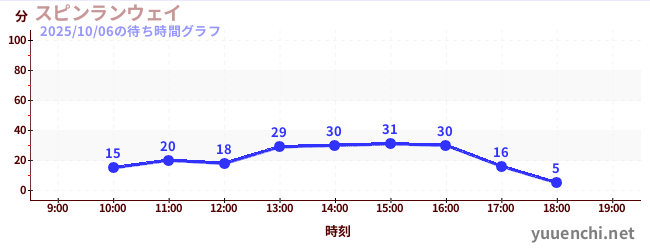 2025/10/06の待ち時間グラフ (スピンランウェイ)