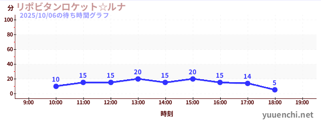 2025/10/06の待ち時間グラフ (リポビタンロケット☆ルナ)