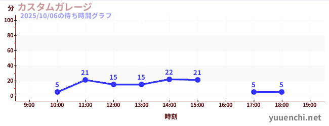 2025/10/06の待ち時間グラフ (カスタムガレージ)