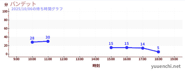 2025/10/06の待ち時間グラフ (バンジージャンプ)