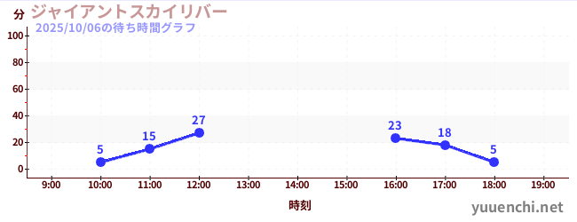 2025/10/06の待ち時間グラフ (ジャイアントスカイリバー)