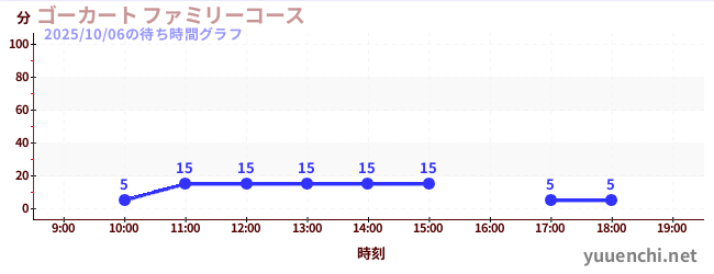 2025/10/06の待ち時間グラフ (ゴーカート ファミリーコース)