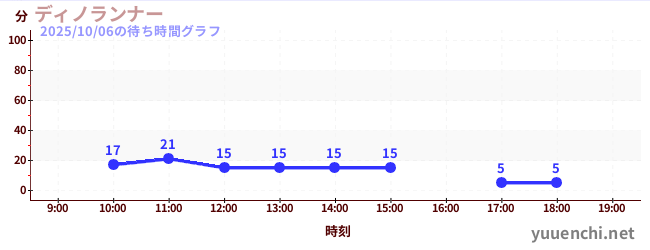 2025/10/06の待ち時間グラフ (ディノランナー)
