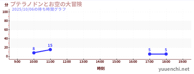 2025/10/06の待ち時間グラフ (プテラノドンとお空の大冒険)