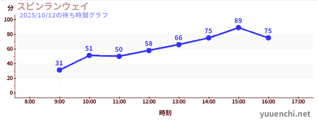 2025/10/12の待ち時間グラフ (スピンランウェイ)