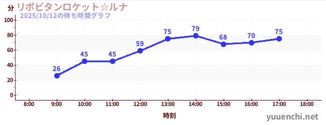 2025/10/12の待ち時間グラフ (リポビタンロケット☆ルナ)