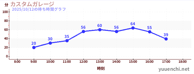 2025/10/12の待ち時間グラフ (カスタムガレージ)