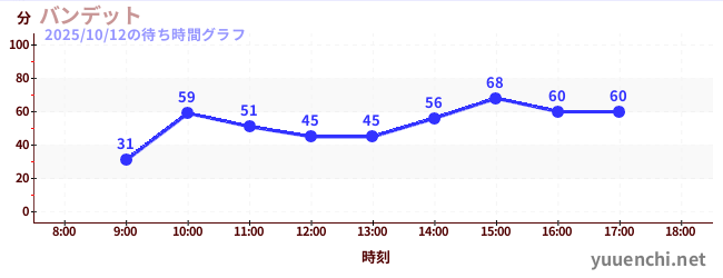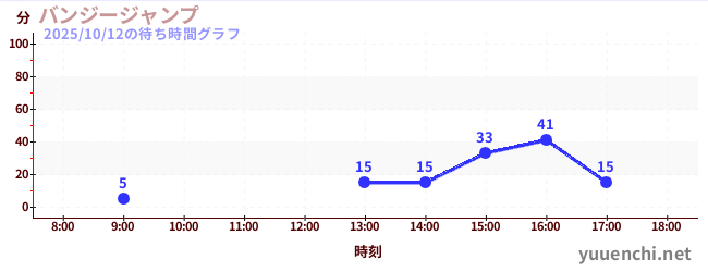 2025/10/12の待ち時間グラフ (バンジージャンプ)