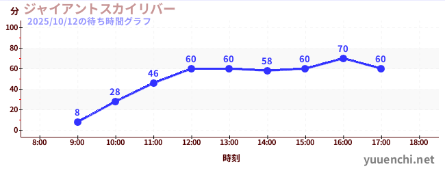 2025/10/12の待ち時間グラフ (ジャイアントスカイリバー)