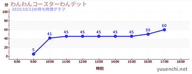 2025/10/12の待ち時間グラフ (わんわんコースターわんデット)
