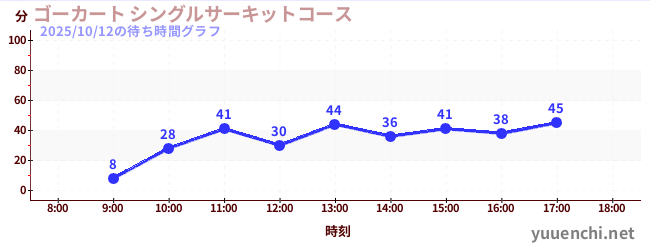 2025/10/12の待ち時間グラフ (ゴーカート シングルサーキットコース)