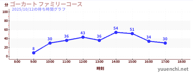 2025/10/12の待ち時間グラフ (ゴーカート ファミリーコース)