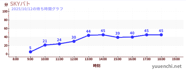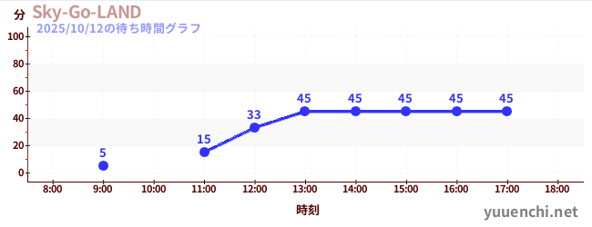 2025/10/12の待ち時間グラフ (Sky-Go-LAND)