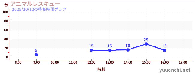 2025/10/12の待ち時間グラフ (アニマルレスキュー)