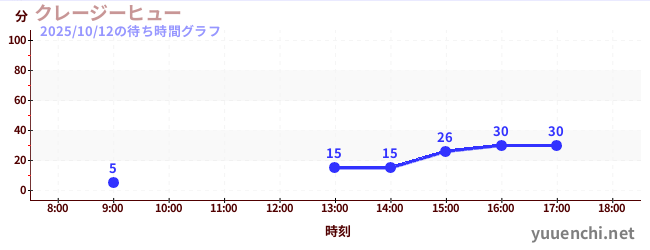 2025/10/12の待ち時間グラフ (クレージーヒュー)