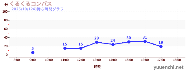 2025/10/12の待ち時間グラフ (くるくるコンパス)
