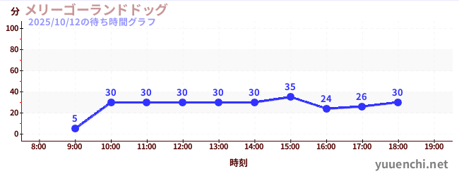 2025/10/12の待ち時間グラフ (メリーゴーランドドッグ)