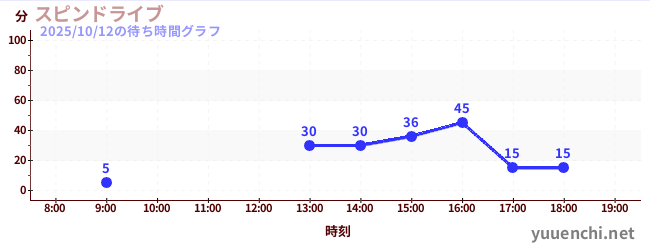 2025/10/12の待ち時間グラフ (スピンドライブ)