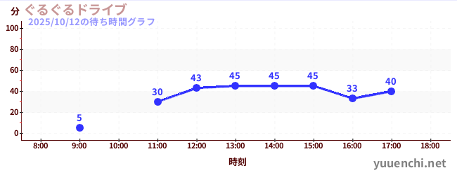 2025/10/12の待ち時間グラフ (ぐるぐるドライブ)