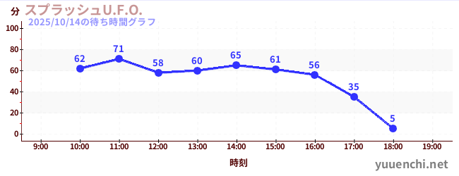 2025/10/14の待ち時間グラフ (スプラッシュU.F.O.)