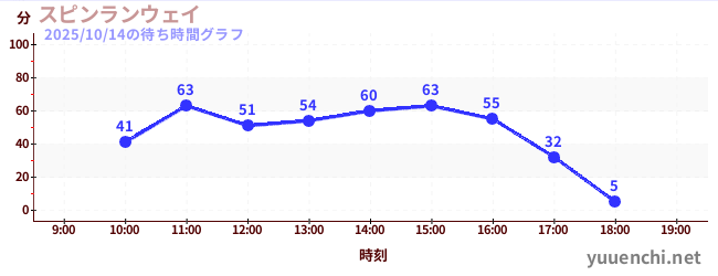 2025/10/14の待ち時間グラフ (スピンランウェイ)