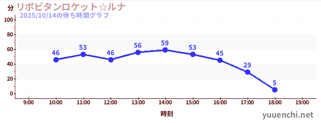 2025/10/14の待ち時間グラフ (リポビタンロケット☆ルナ)