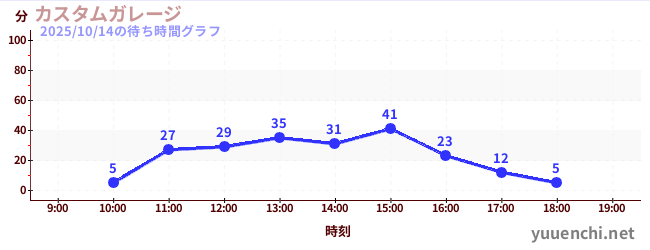 2025/10/14の待ち時間グラフ (カスタムガレージ)