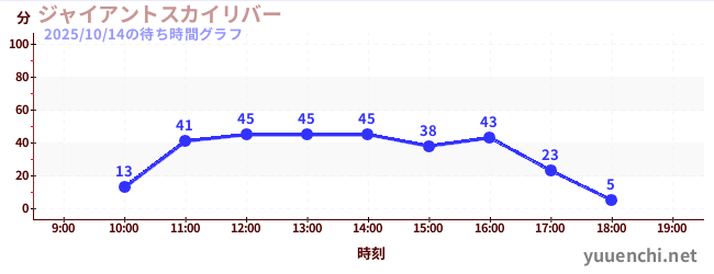 2025/10/14の待ち時間グラフ (ジャイアントスカイリバー)