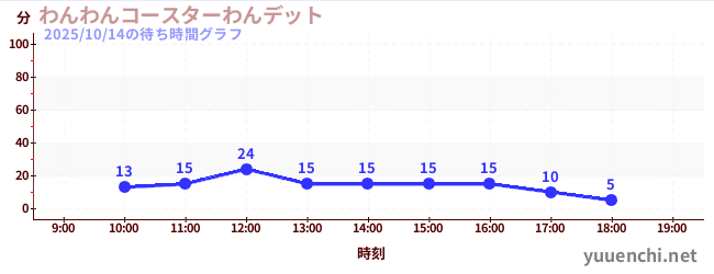 2025/10/14の待ち時間グラフ (わんわんコースターわんデット)