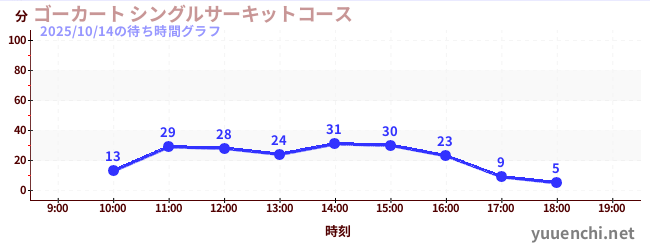 2025/10/14の待ち時間グラフ (ゴーカート シングルサーキットコース)