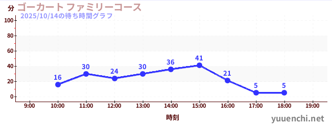 2025/10/14の待ち時間グラフ (ゴーカート ファミリーコース)