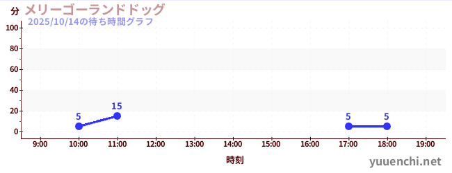 2025/10/14の待ち時間グラフ (メリーゴーランドドッグ)