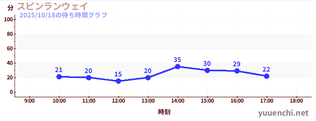 2025/10/18の待ち時間グラフ (スピンランウェイ)