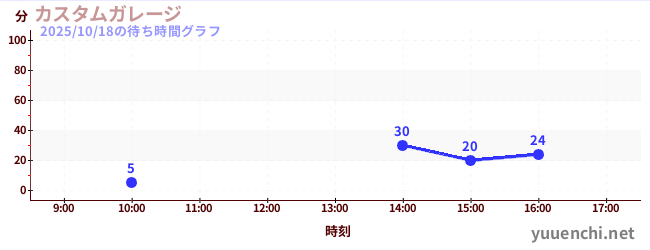 2025/10/18の待ち時間グラフ (カスタムガレージ)