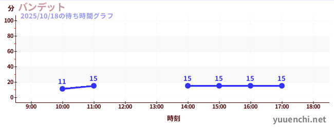 2025/10/18の待ち時間グラフ (バンジージャンプ)