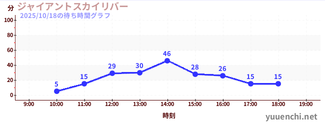 2025/10/18の待ち時間グラフ (ジャイアントスカイリバー)