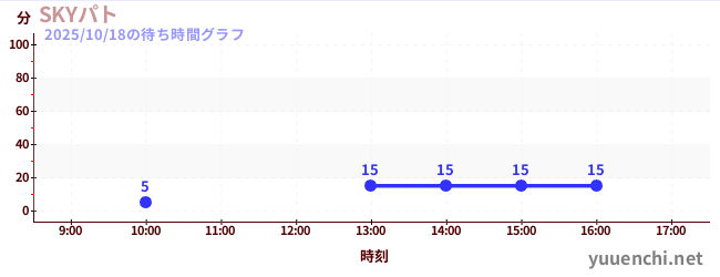 2025/10/18の待ち時間グラフ (Sky-Go-LAND)
