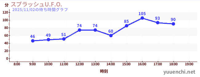 2025/11/02の待ち時間グラフ (スプラッシュU.F.O.)