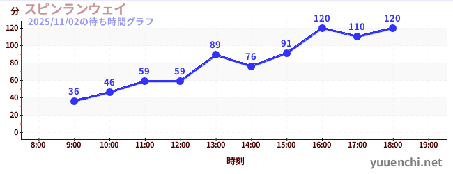 2025/11/02の待ち時間グラフ (スピンランウェイ)